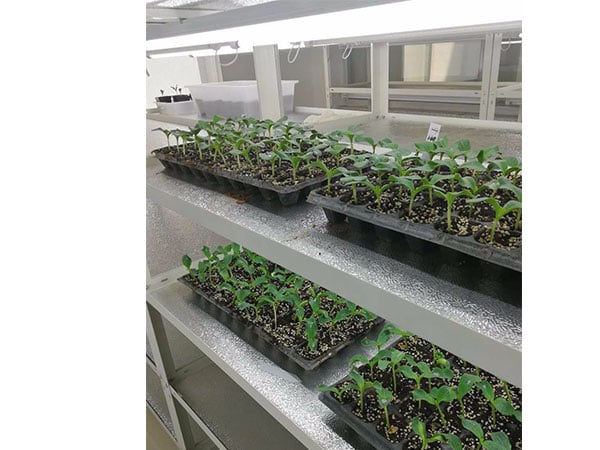 8、培養架高為2米,長為1.25米,寬為0.5米。架子設4層,每層高度為45厘米,層高可調節,底架距地麵5厘米。層中間用1.5厘米厚的防火實心板分隔,實心板要平,中間加兩根加強筋,時間長不會向中間凹陷。實心板為白色,網架下掛植物燈。